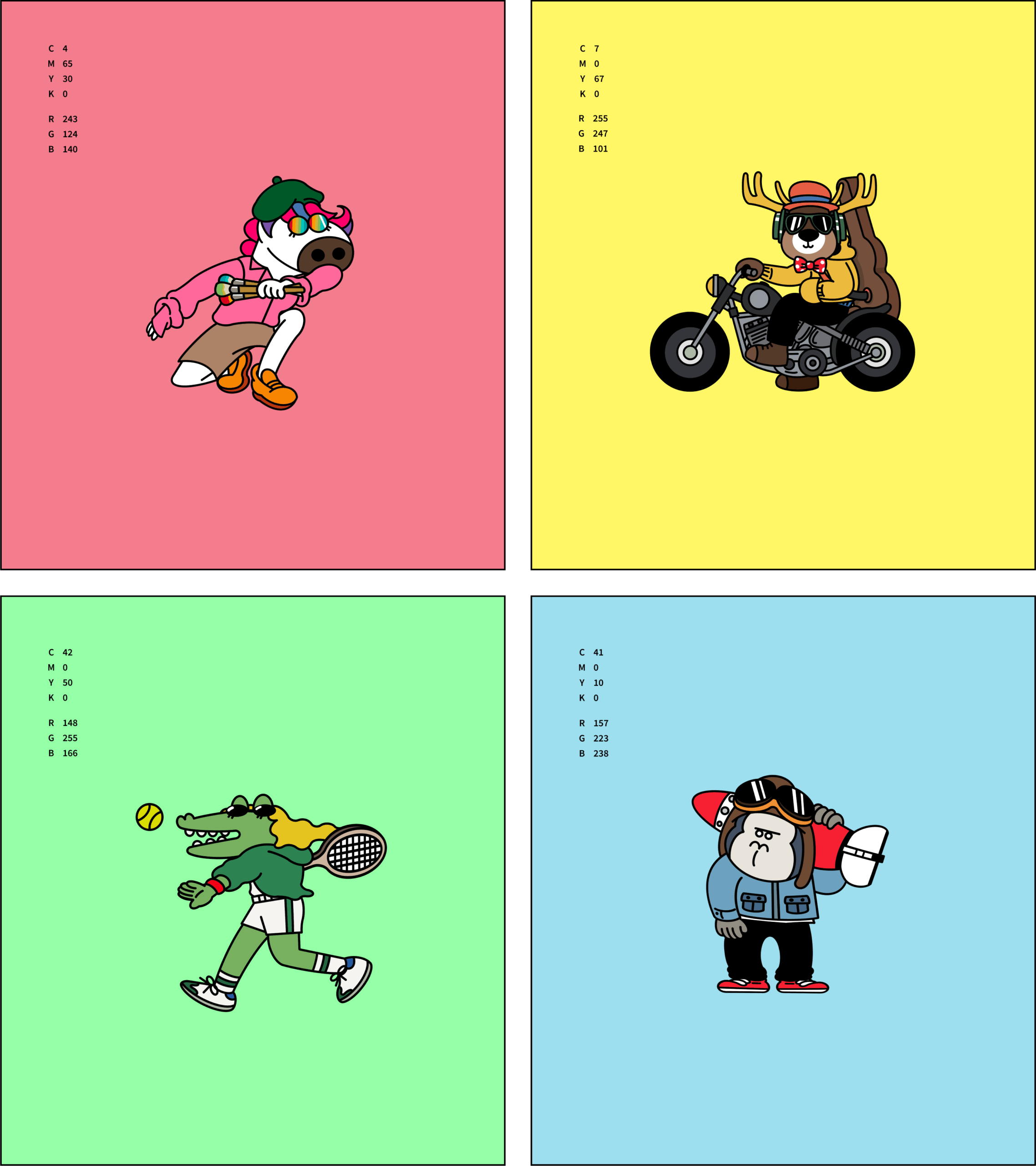背景にも水玉模様や派手なストライプを使用するなど、そのテクスチャー感からも世界観を演出しています。