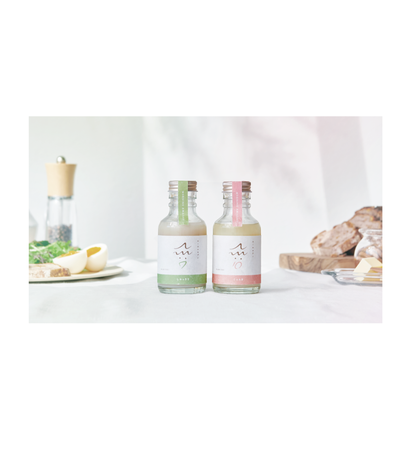 コンセプトは『朝(AM)に飲む甘酒(AMazake)』。朝専用の甘酒です。時間や気分に合わせて飲み分ける、「AM7(エーエムセブン)」と「AM10(エーエムテン)」の2つのスタイルがあります。