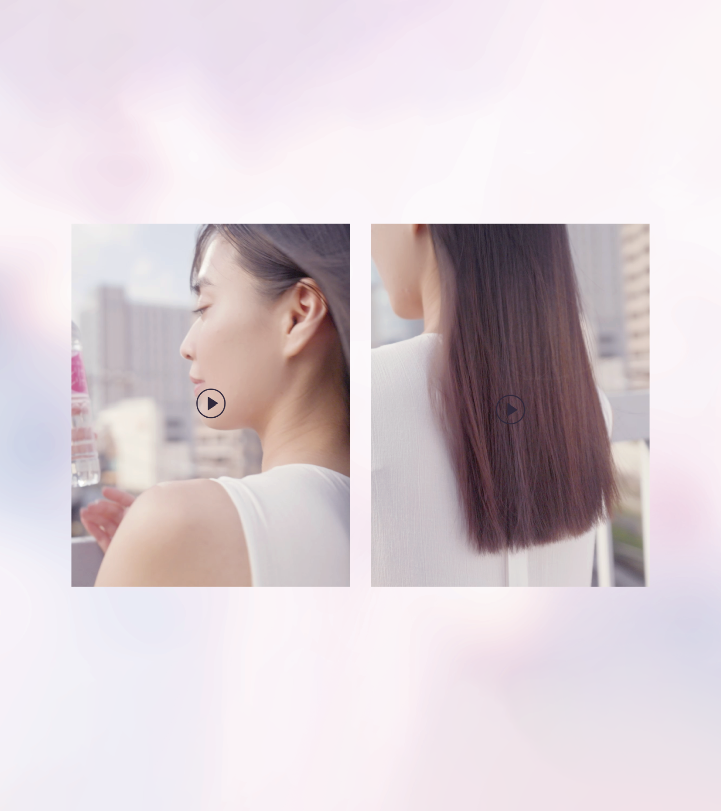 肌と髪のどちらにも、という商品の訴求ポイントを決める大きな要素がキービジュアル。特に撮影には注力し、モデルのキャスティングからreiroで担当させていただきました。女性の美と健康を支えるというテーマに合わせ、室内外両方のロケーションで肌・髪の魅力を引き出す撮影を行いました。