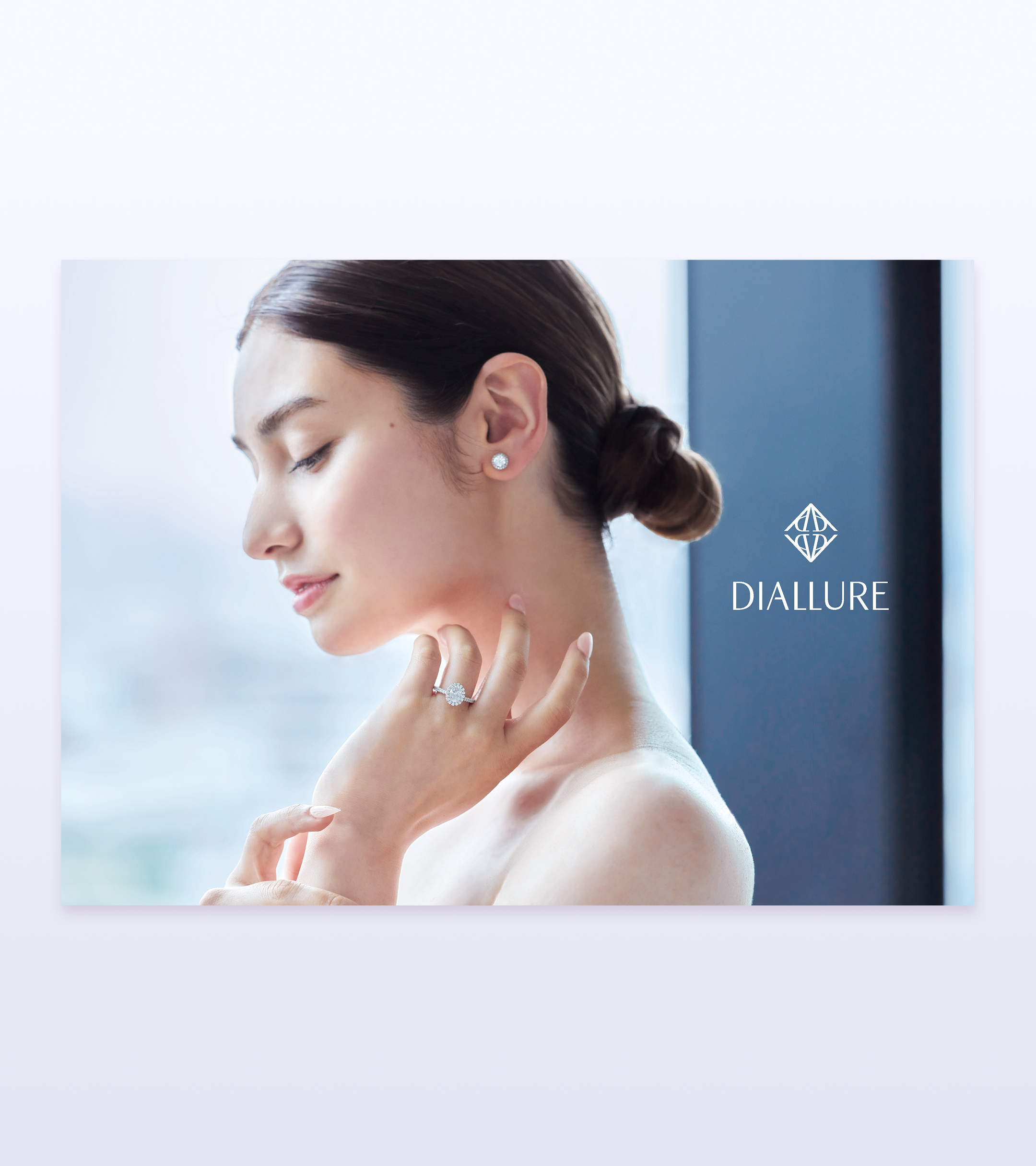 ロゴマークは、ブランド名「DIALLURE」の頭文字であるDとAを組み合わせ、ダイヤモンドの形を表現したマークに仕上げています。シンプルながら、ブランドの本質を象徴するかたちにしています。