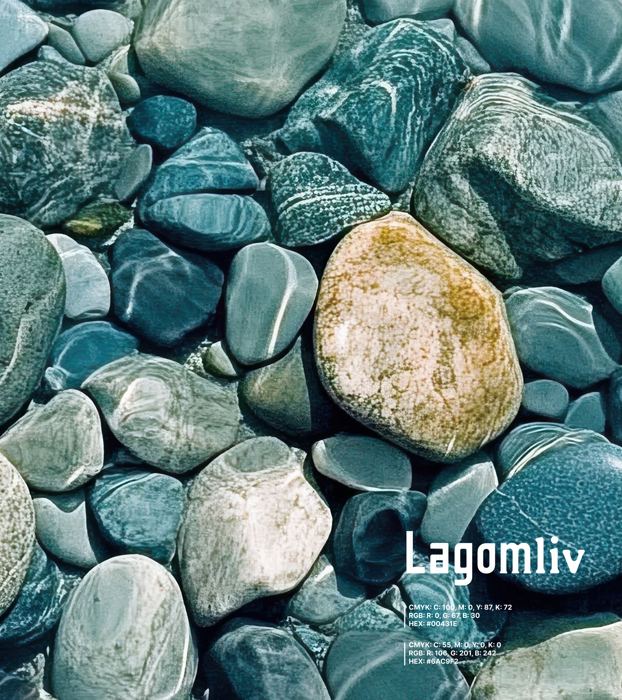 これは、川の上流から下流へと流れる自然の変化を表現したものです。源流付近にはゴツゴツとした岩が多く存在しますが、水に削られながら流れを経ることで、次第に小石へと変化していきます。そして下流では、丸くなった小石の上を穏やかに水が流れていきます。ロゴのフォルムは、この自然の移ろいをなぞるように設計しました。